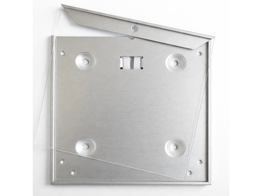 - obvod cedulky tvoří úzký hliníkový rámeček, stříbrně eloxovaný